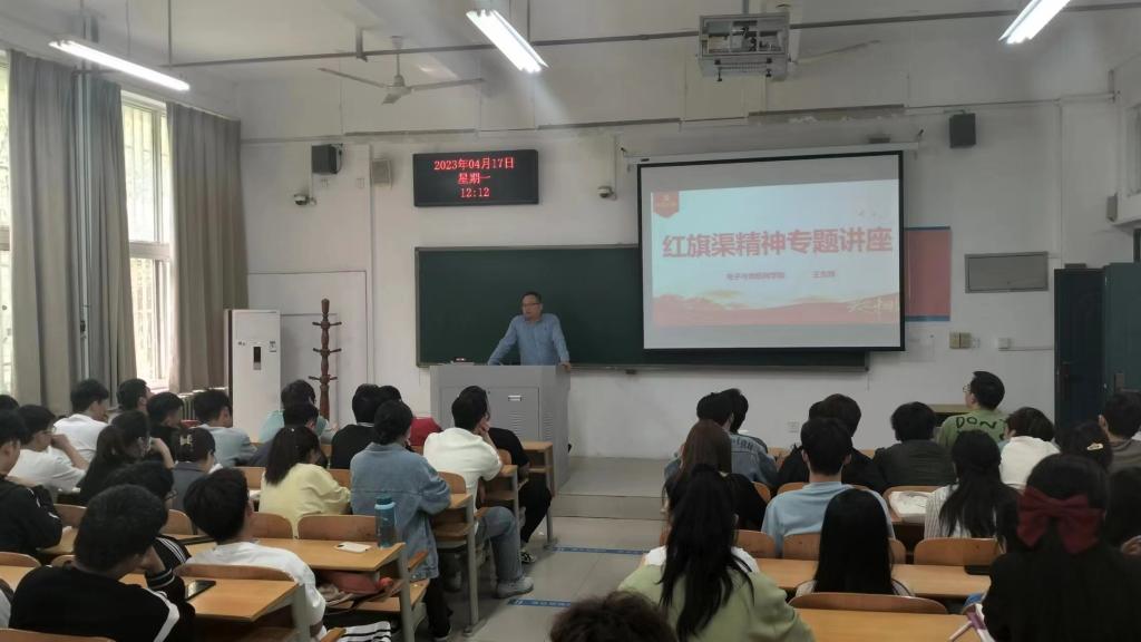 4月17日中午,电子与物联网公司党总支书记王东辉,在明理楼1105为williamhill英国威廉希尔第四期入党积极分子开展了以《红旗渠精神》为主题的专题讲座。