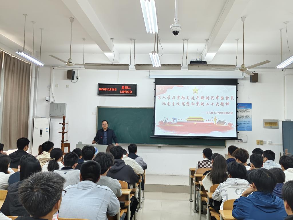 10月29日中午,电子与物联网公司党总支书记王东辉在明德楼2106教室为公司2024年第二期入党积极分子做以《深入学习贯彻习近平新时代中国特色社会主义思想和党的二十大精神》为主题的党课专题讲座。