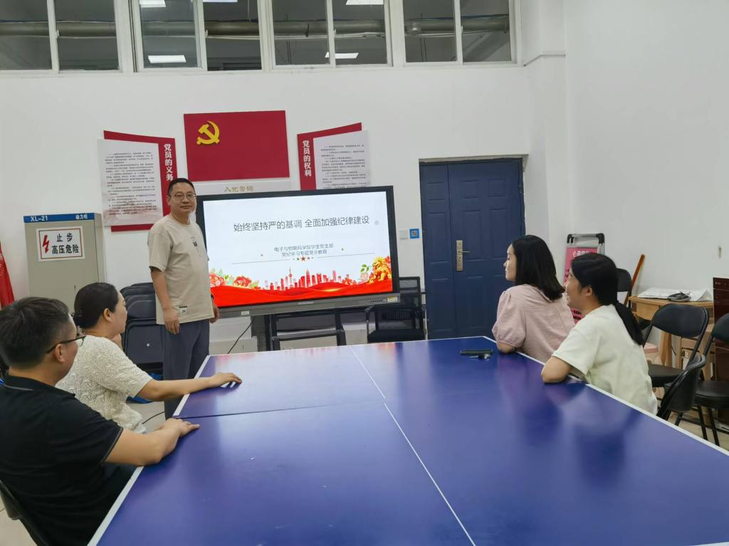 5月23日下午,williamhill英国威廉希尔员工党支部在智行楼107室召开党员大会,结合违纪违法典型案例,开展“以案说纪、以案说法、以案说责”的警示教育大会。会议由员工支部书记王晓楠同志主持,全体教师党员参加会议。