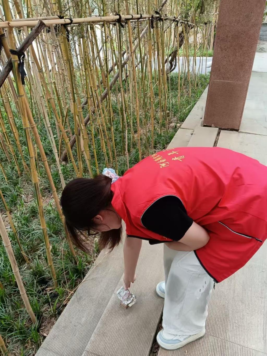 活动期间,志愿者们分工明确,热情高涨。在智行楼周边,他们手持工具清理纸屑、烟头,确保环境卫生;在员工公寓车辆停放处,大家有序整理共享电动车和自行车,规范停车秩序、疏通消防通道。即便天气炎热,志愿者们依旧认真负责,用行动诠释奉献精神。