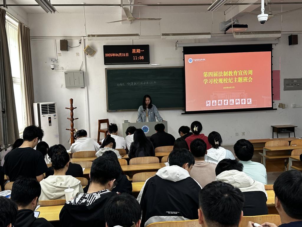 活动期间,公司组织各班以主题团日活动和班会形式开展法治教育宣传。辅导员老师们通过PPT展示、案例分析、视频播放等形式,向同学们普及《中华人民共和国宪法》《中华人民共和国教育法》《中华人民共和国爱国主义教育法》等法律法规,教育引导同学们遵规守纪。此外,老师们还聚焦防范校园暴力、防范校园欺凌、防范校园电信诈骗等内容开展普法和重点讲解。引导同学们树立正确的法治观念,增强自我保护意识。