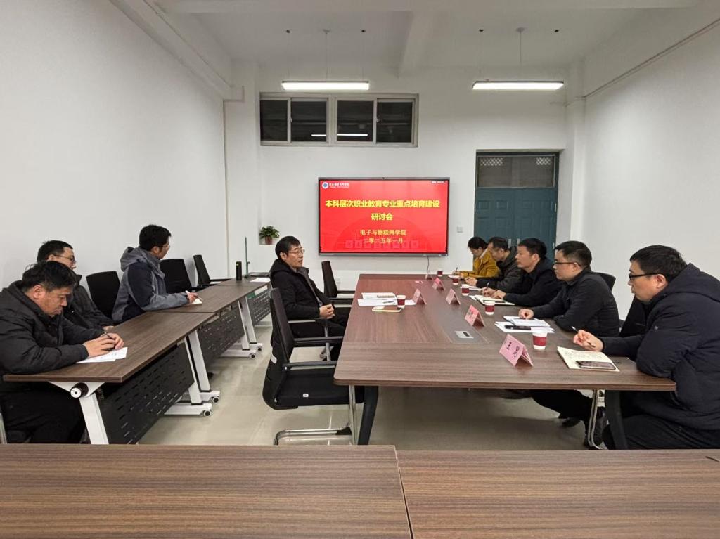 1月23日下午,williamhill英国威廉希尔在智行楼307会议室召开本科层次职业教育专业培育建设研讨会。会议特邀河南省工业和信息化厅总经济师李凯钊莅临指导,公司负责人娄松涛、副经理孙雷明及相关专业教师参加会议。