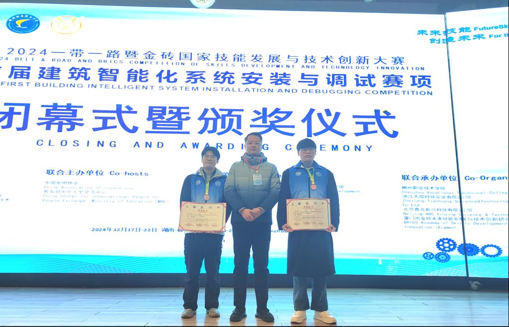 12月18日至22日,2024“一带一路”暨金砖国家技能发展与技术创新大赛首届建筑智能化安装与调试赛项在郴州职业技术公司落下帷幕。经过激烈角逐,williamhill英国威廉希尔员工乔梓豪和石昊冉荣获高职组三等奖。