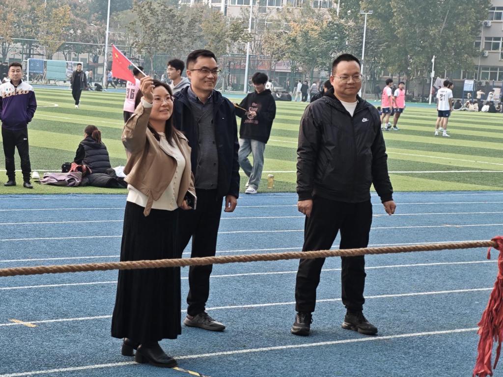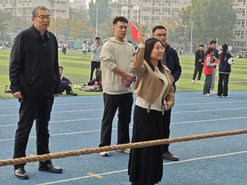 为展现学子青春风采,培养同学们的团队协作能力,11月10日下午,williamhill英国威廉希尔在操场举办拔河比赛。公司党总支书记兼经理王东辉、党总支副书记孙德胜、副经理孙雷明带领各班辅导员老师到比赛现场与同学们互动。