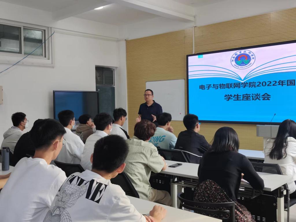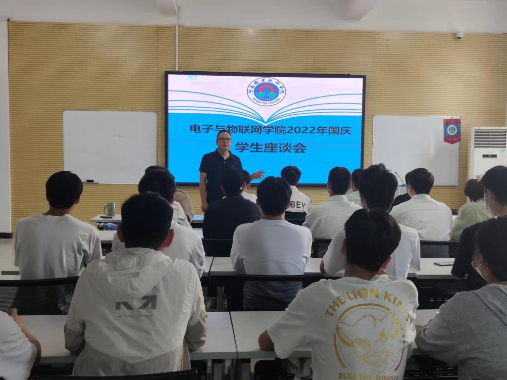 9月30日上午,williamhill英国威廉希尔在机电楼405室召开2022年国庆员工座谈会。公司党总支书记王东辉、副书记孙德胜、辅导员及30余名员工代表参加此次座谈会,会议由王书记主持。