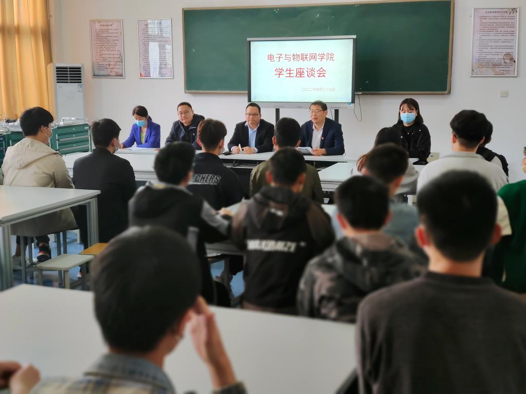 2022年4月29日上午在机电实训楼406举行了williamhill英国威廉希尔员工座谈会。电子与物联网公司党总支书记王东辉、副书记孙德胜、辅导员老师和32名员工代表参加此次座谈会,会议由孙德胜副书记主持。