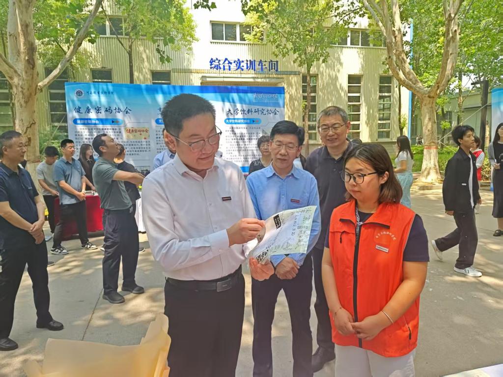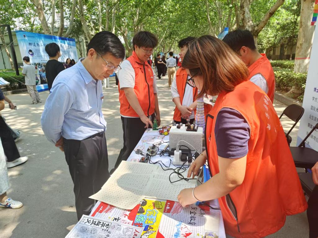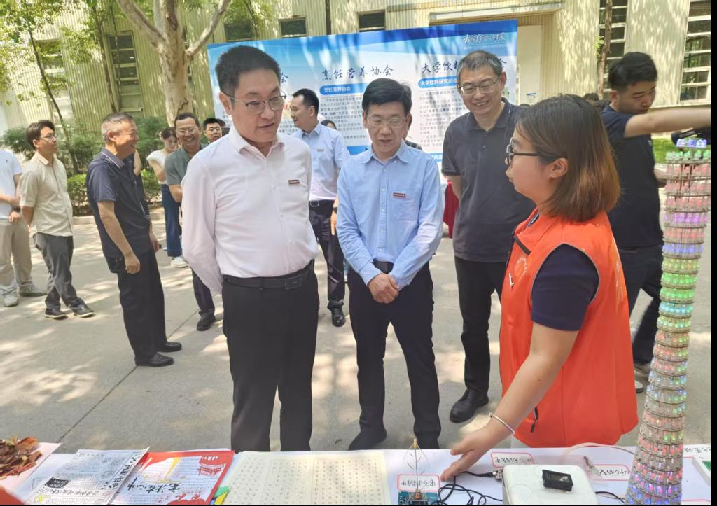 在公司的展桌上,陈列着公司学子精彩的书法作品、创意十足的手工制品和实用美观的科技作品。员工讲解员以饱满的热情,向驻足参观的领导、老师和同学们详细介绍展品。厉励来到公司展区参观指导。他强调,同学们要积极将理论知识转化为科技成果,学习体悟大国工匠精神,为实现中国式现代化贡献力量。