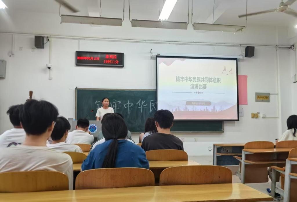比赛中,参赛选手结合自身经历和感悟,围绕中华民族共同体意识的理论内涵与时代价值、各民族间的深厚友谊以及民族团结的重要性等方面展开了精彩演讲。选手们用真挚的情感和生动的语言,讲述了各民族在历史长河中的交融与共进,展现了当代青年对民族团结的深刻理解和坚定信念。评委们从演讲内容、语言表达、情感感染力等多个维度进行评分。经过严格的评选,物联网242班郭昭霖同学获得一等奖,通信242班李心情、通信242班李恩祈获得二等奖,电子241赵世炫、电子242李鑫和物联网242陈昕旸获得三等奖。