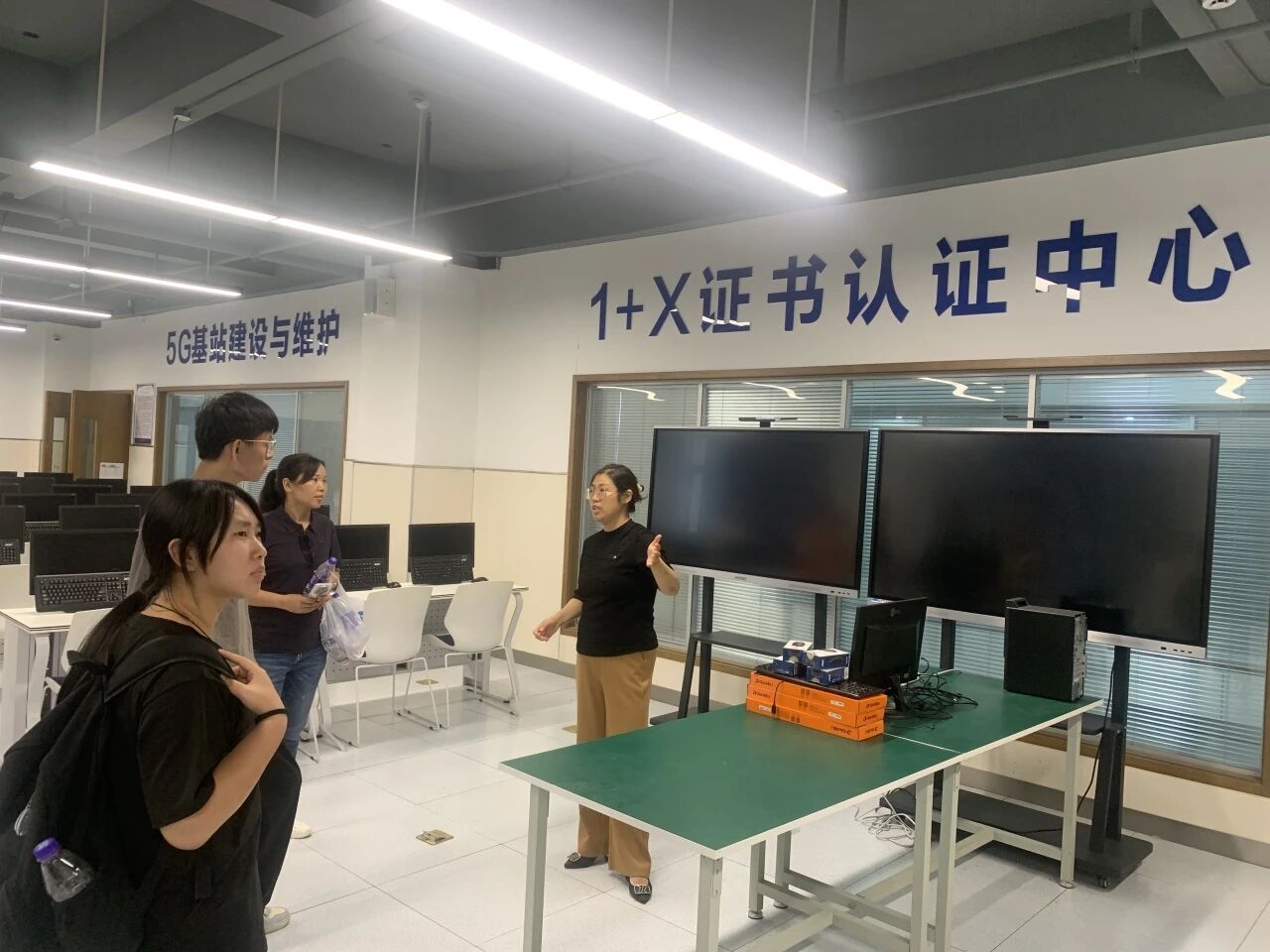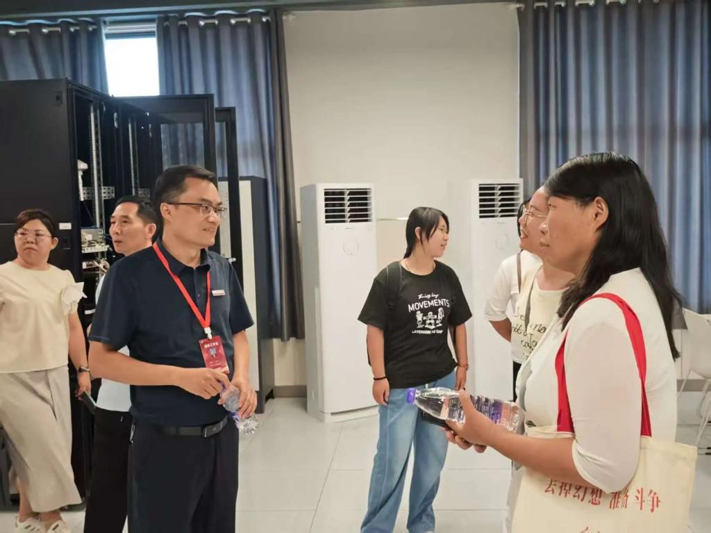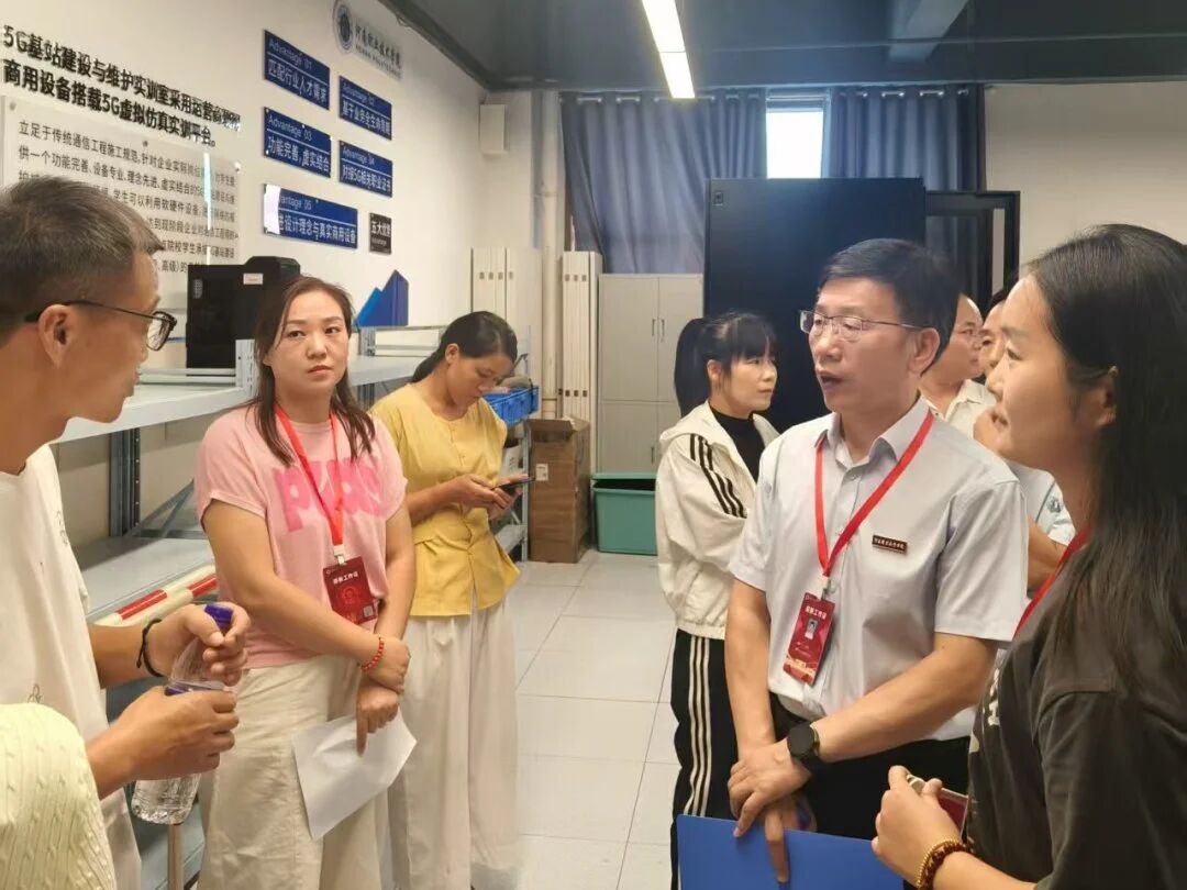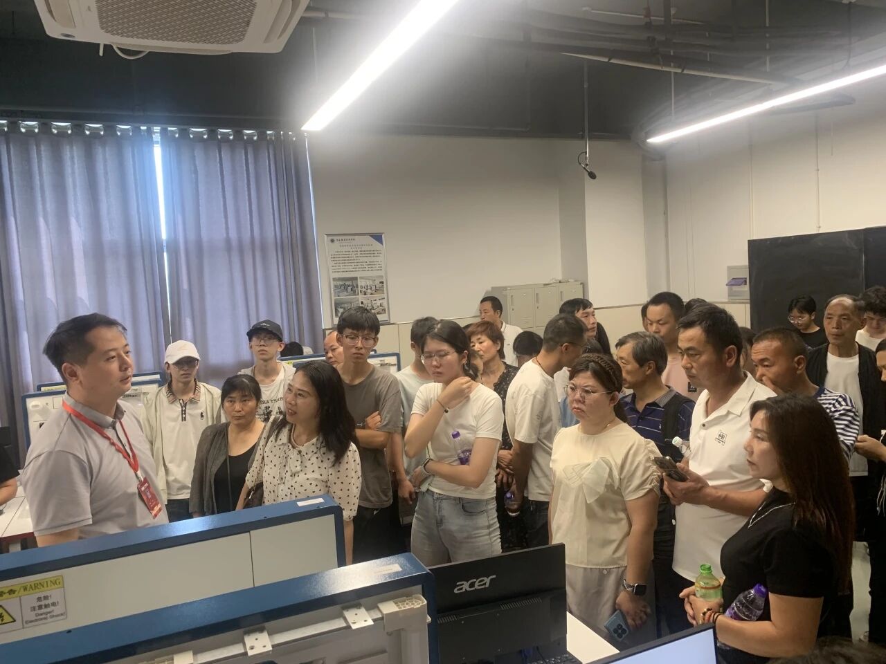 在副经理孙雷明的带领下,武漫漫、王香丽、马青松三位教研室主任全程陪同家长,依次参观了电子技术综合实训室、5G通讯技术实训室、电子线路实训室及物联网智能家居系统集成和应用实训室。实训室内,老师们生动讲解了电工电子技能实训平台、任意波形发生器、信号分析仪等设备功能及教学应用。比如:在5G通讯技术实训室,讲解设备如何支撑相关课程的实践教学;在物联网智能家居实训室,通过模拟场景演示,说明员工未来将接触的技能学习方向。通过实地参观与专业讲解,家长直观感受到员工技能培养体系,高度认可公司实践教学实力。