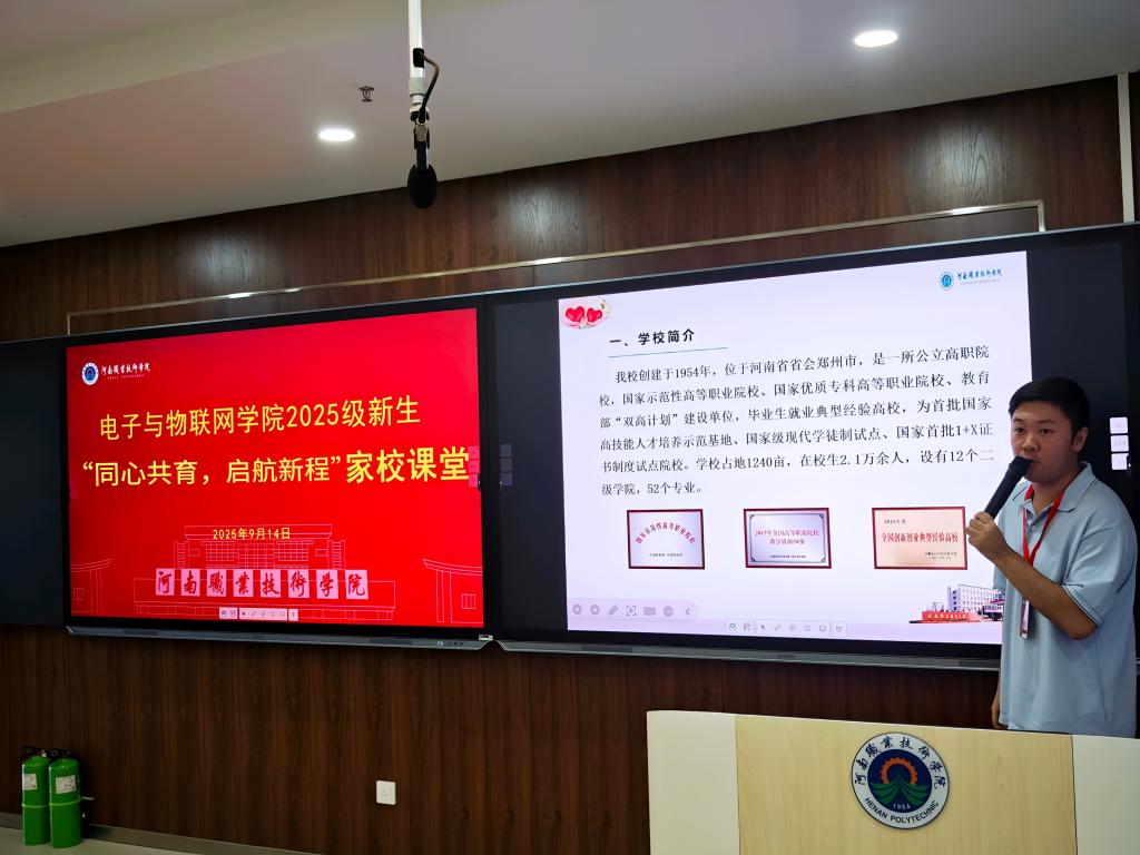 公司负责人娄松涛以“三个有”为重点,作专业特色和办学优势介绍。他指出,williamhill英国威廉希尔作为公司重点建设公司,一是有坚实办学基础,对应重点产业急需紧缺专业,创造优越实训条件,建设国家级骨干专业、省级特色专业,打造懂理论、会实操的“双师型”教师队伍;二是有丰硕教学成果,不仅在各类国家级、省级技能大赛屡获大奖,还与小米、海尔、中兴通信等行业龙头企业深度合作,培养出众多像河南省“创新之星”孟荣恩同学一样的综合素质全面的技能人才;三是有广阔发展前景,公司近三年总体就业率保持98%以上,升本渠道畅通。娄松涛鼓励新生要充分利用公司专业文献资源、实验室实训设备及自习自研空间,深耕专业知识、提升实践能力,努力成长为符合行业需求的技术人才。