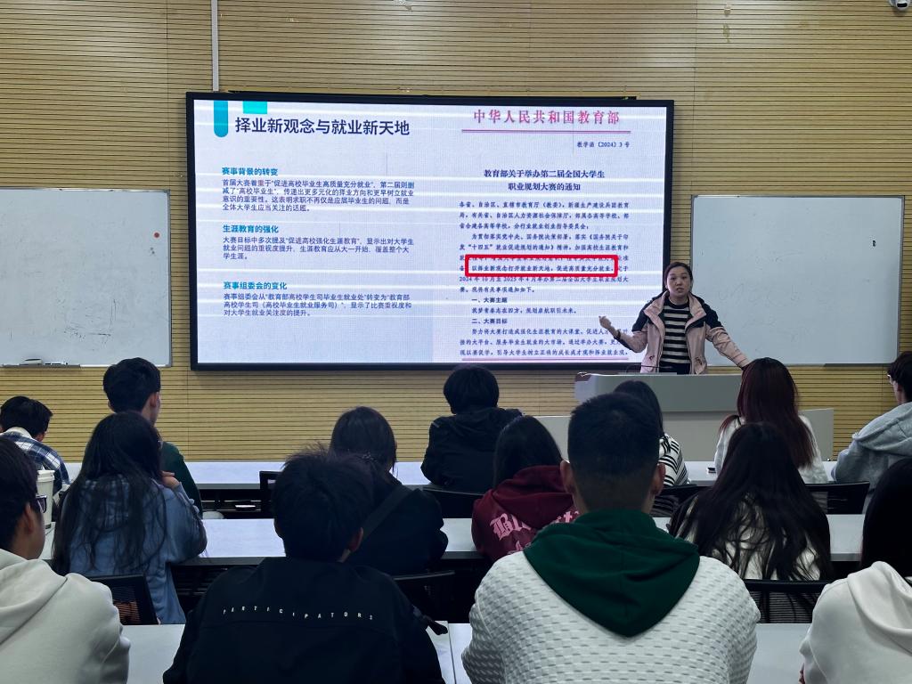 会上,王蕊老师通过对职业目标设定、评分标准分析、生涯发展报告撰写技巧、主题陈述展示等方面的讲解,结合自身指导经验,分享了如何有效的将个人职业目标与市场需求结合,制定切实可行的职业发展路径。本次解读会旨在帮助选手们全面理解大赛规则,把握赛事最新变化,优化个人职业规划方案,提升参赛竞争力。