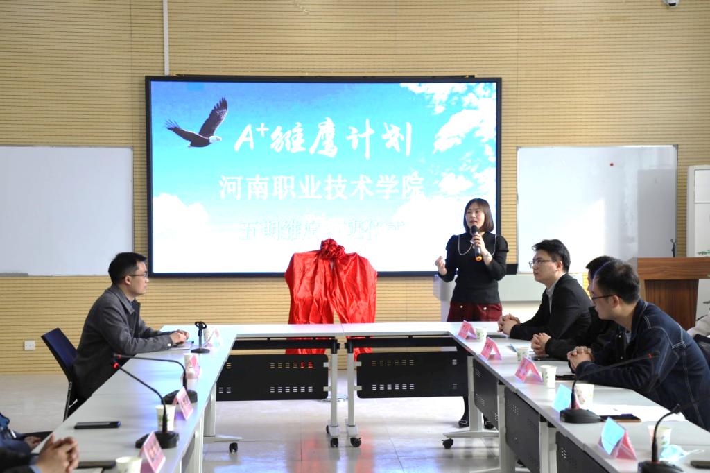 富士康科技集团人资部任欣资深副理介绍了“A+雏鹰计划”项目建立的背景和意义。她表示,“A+雏鹰计划”项目是校企合作又一种全新模式的尝试,校企双方为“A+雏鹰计划”项目投入了大量的精力和充足的资源,为同学们的后续成长制定了科学的规划,搭建了广阔的舞台。希望同学们能够珍惜机会,努力学习,争取成为该项目的最大受益者。