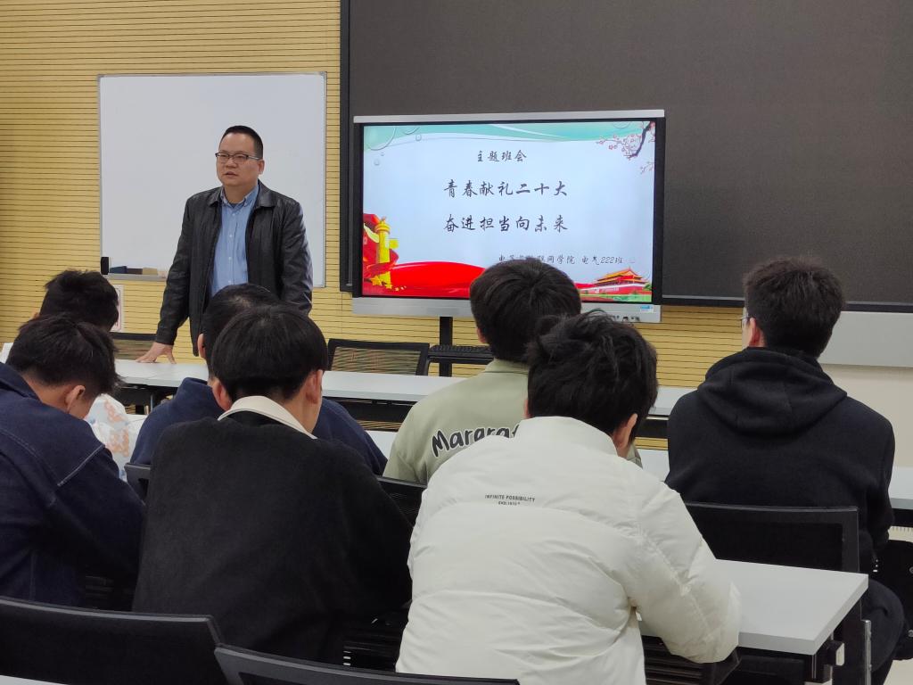 在活动中,王经理首先参加了该班《青春献礼二十大 奋进担当向未来》主题班会,聆听了同学们的心声,又开展了“新学期新征程 青年学子砥砺前行”主题讲座。要求同学们充分学习党的二十大会议精神,结合在校期间自身学习生活情况,深入理解会议内涵,认真领会会议精神。