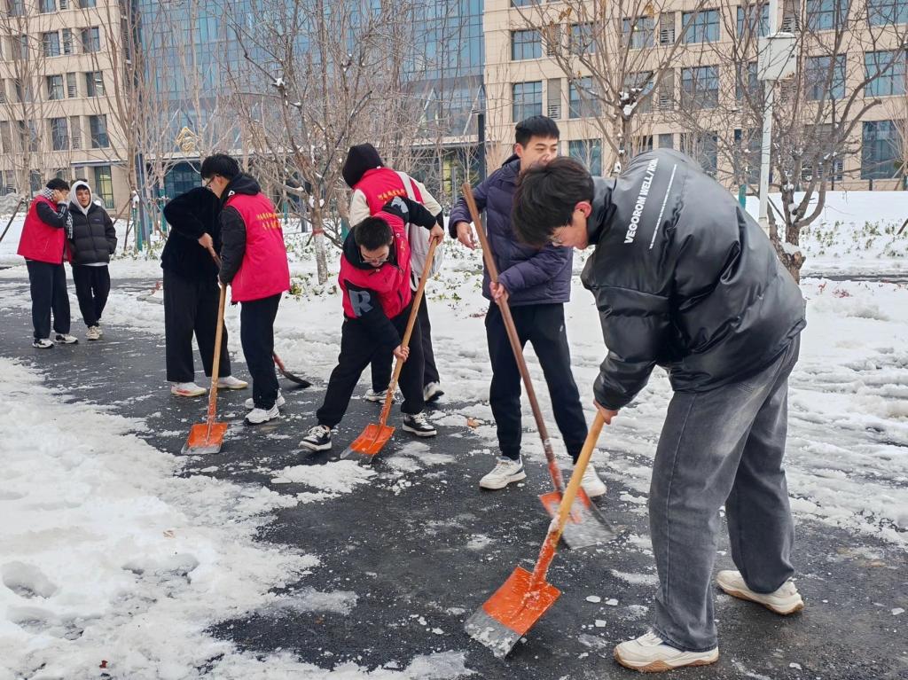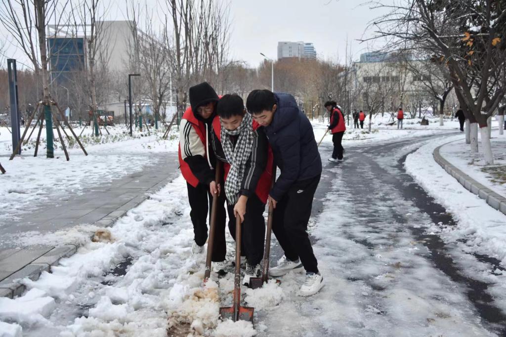 此次扫雪除冰活动不仅清除了道路上的积雪和冰块,保障了师生的安全通行,也展现了师生志愿者们的担当和责任,树立了良好的榜样,增强了同学们的凝聚力和向心力。他们的行动不仅为校园增添了一份清新和美好,也为社会传递了一份温暖和正能量。(撰稿:王蕊 审稿:王东辉)