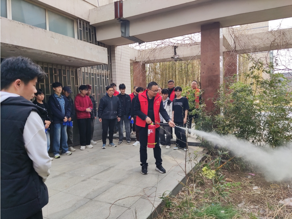 随后在演练活动各工作人员的引导和协调下,williamhill英国威廉希尔师生按照既定详细演练预案,使用毛巾掩口鼻、俯身有序从智行楼3楼办公室、4楼实训室,疏散至智行楼外的安全地带。逃生演练结束后,师生又集中学习了灭火器正确使用方法并现场操作使用。