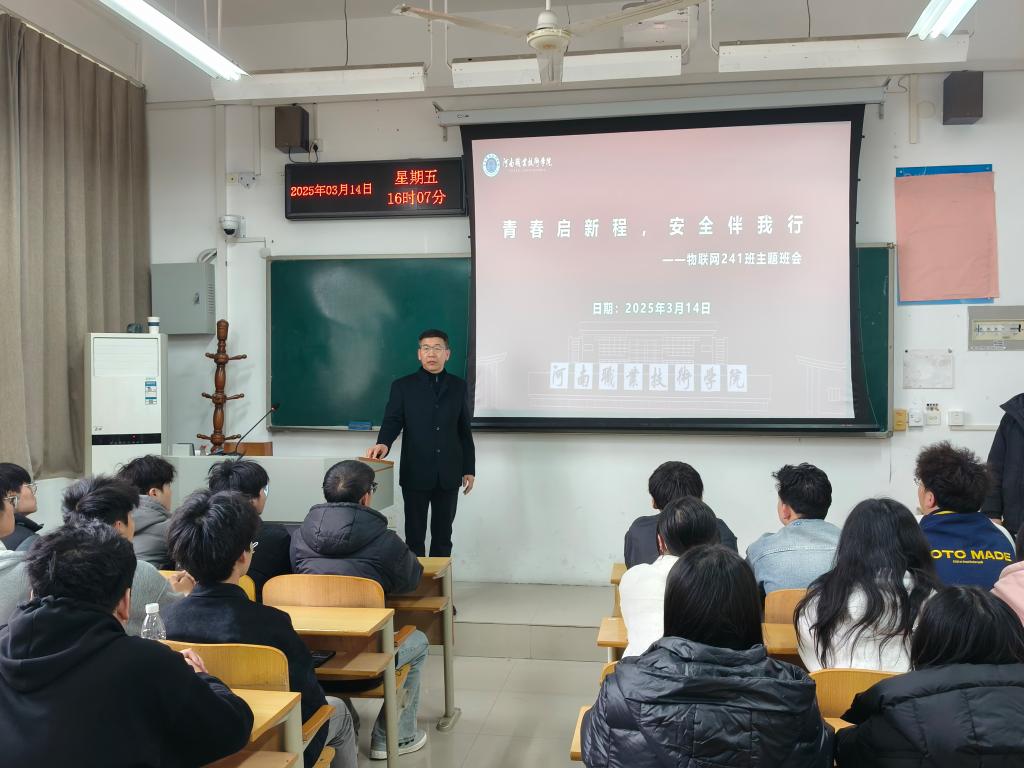 3月14日下午,电子与物联网公司党总支书记谭营军深入联系班级物联网241班,以“青春启新程,安全伴我行”为主题讲授思政课,并与同学们面对面开展交流。